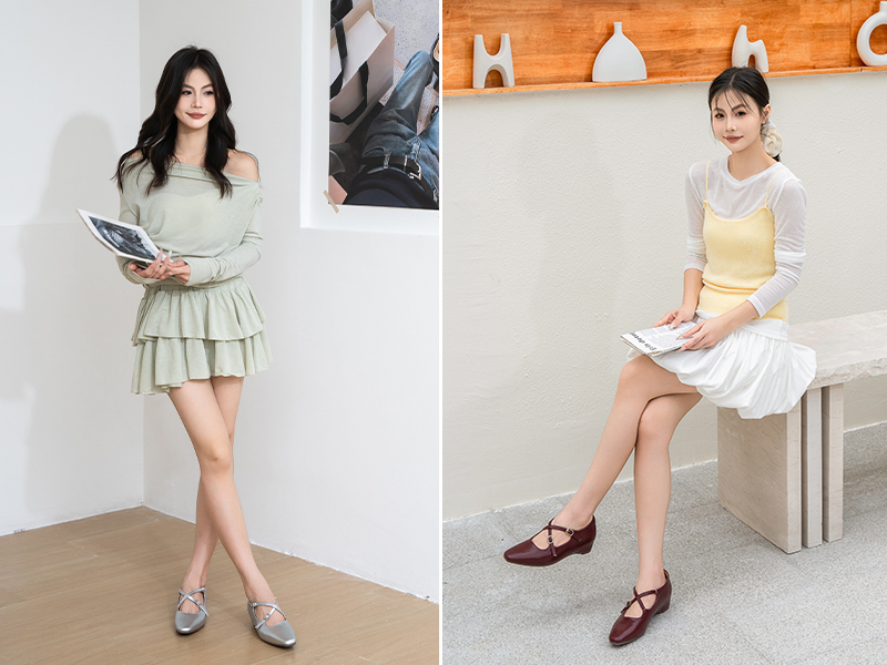 交叉細帶瑪莉珍鞋:優雅與層次感兼具
