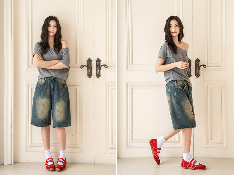 復古刷色寬鬆的牛仔褲輪廓與具備分量感的運動型瑪莉珍完美契合,營造出一種不刻意打扮的「鬆弛感」