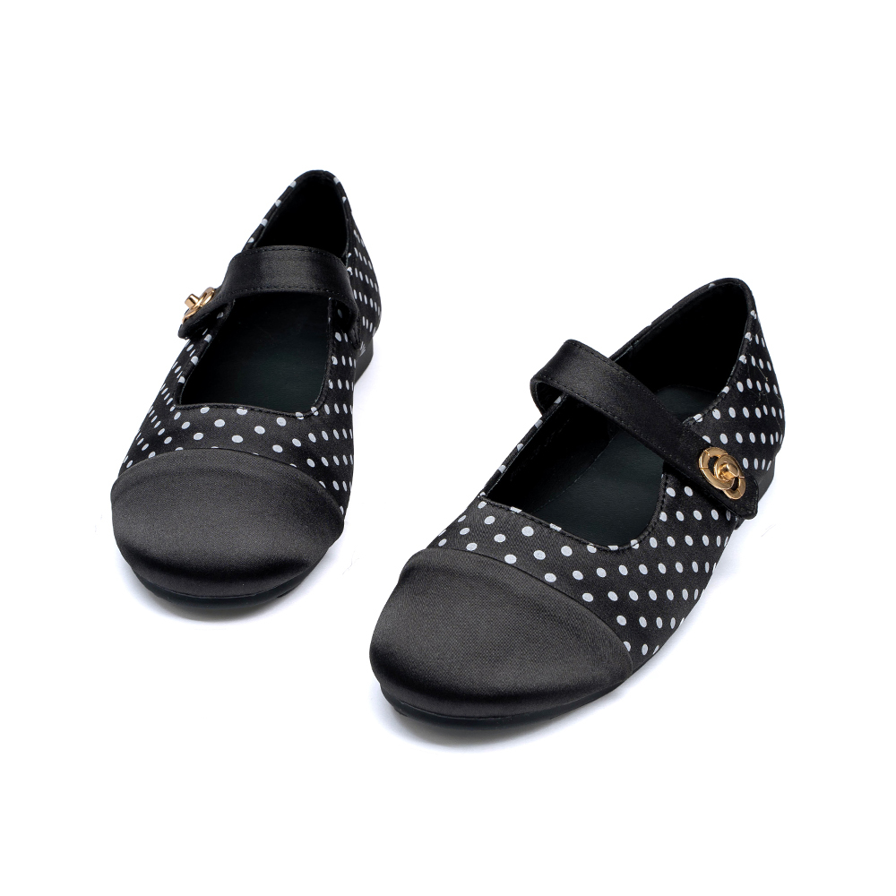 這款鞋子因其獨特的波點圖案與精緻的鎖釦,非常適合用來提升日常穿搭的視覺層次