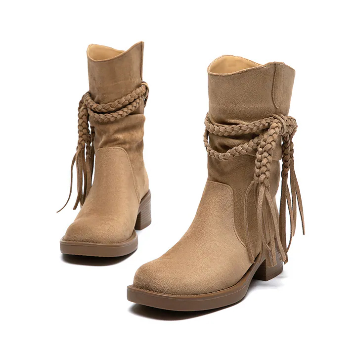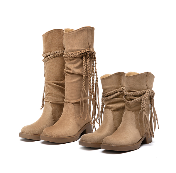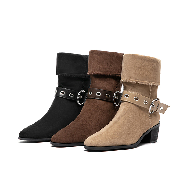 短靴 輕量厚底瘦瘦切爾西靴(2色) | 短靴 尖頭個性牛仔反摺靴(3色) | 中筒靴 麂皮編織流蘇V口抓皺西部短靴(2色) |