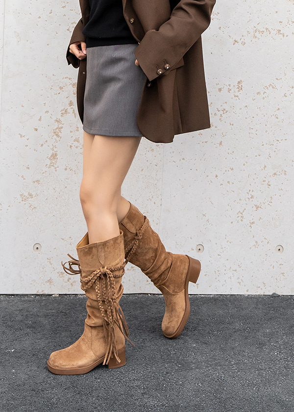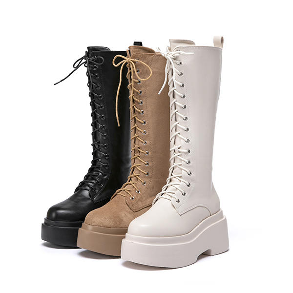長靴 編織流蘇小V口皺褶方頭低跟長靴(2色) | 長靴 逆天長腿加厚鬆糕底綁帶長靴(3色) | 長靴 扣環造型後拉鍊厚底瘦瘦長靴(2色) |