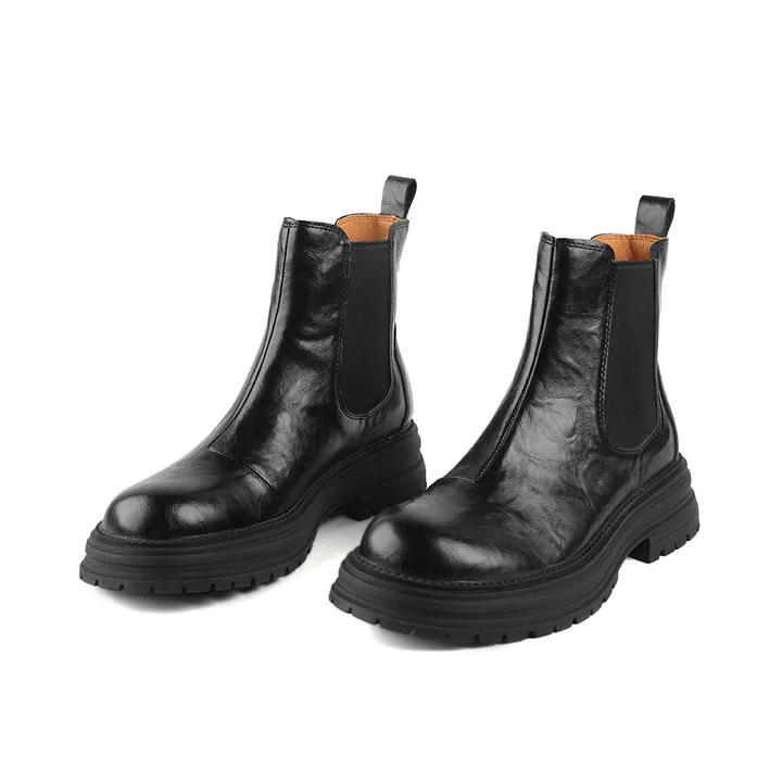 延續秋冬的街頭酷感風潮,這款切爾西靴以真皮拼接彈力布打造俐落線條,展現率性魅力。柔韌細緻的牛皮鞋面結合彈性布料結構,穿脫輕鬆又貼合腳型,兼顧時尚與實穿性。前高後高的厚底設計,在穩定腳步的同時悄悄拉長腿部比例,輕鬆營造「微增高」效果。不論搭配皮褲、寬褲或長裙,都能穿出自信的街頭氣場與高質感時髦造型。