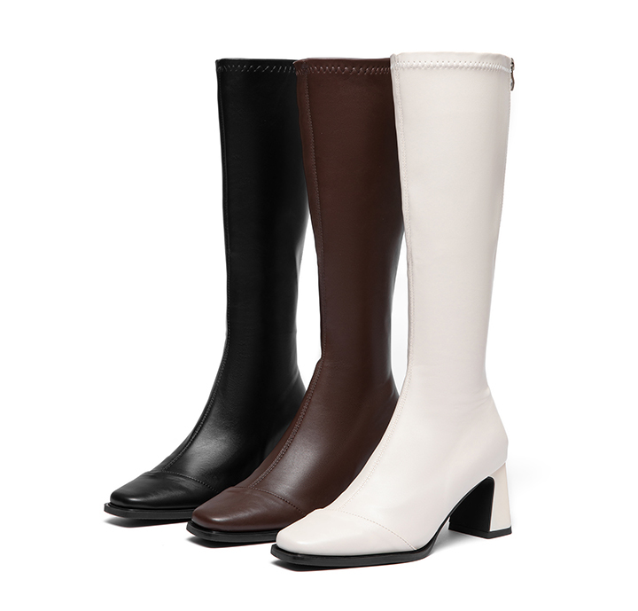 這款方頭粗跟及膝靴以極簡俐落線條打造修長腿部比例,瘦瘦版型貼合小腿曲線,穿上瞬間顯高又顯瘦。6.5cm舒適粗跟設計,行走穩定不咬腳,無論通勤、約會或逛街都能輕鬆駕馭。後側拉鍊穿脫方便,搭配短裙、針織洋裝或長版外套皆能展現時尚高挑氣勢。經典百搭的PU皮革光澤,讓整體造型更顯俐落,是秋冬衣櫃裡不可缺少的顯瘦長靴代表款。(點我)長靴 方頭粗跟瘦瘦及膝靴